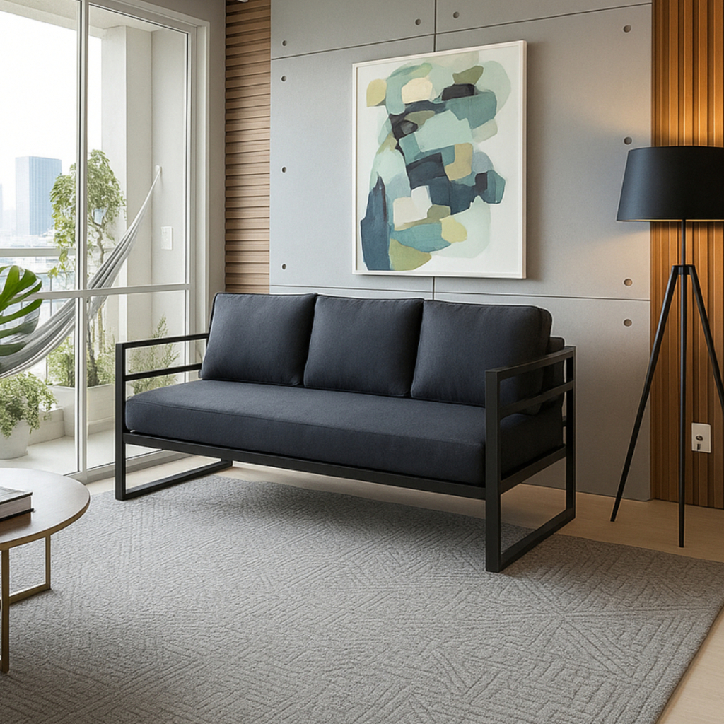 O Sofá Maitê é a escolha ideal para quem busca sofisticação, durabilidade e conforto em um só produto. Com estrutura em ferro preto de aço carbono 1020, soldagem Mig/Mag e pintura eletrostática, garante resistência e firmeza mesmo em uso intenso. O estofado acompanha espuma de alta qualidade com revestimento impermeável, proporcionando mais praticidade no dia a dia e facilidade de limpeza. Com design moderno e elegante, é perfeito para salas, áreas gourmet, varandas cobertas e ambientes comerciais que pedem estilo aliado à robustez.
